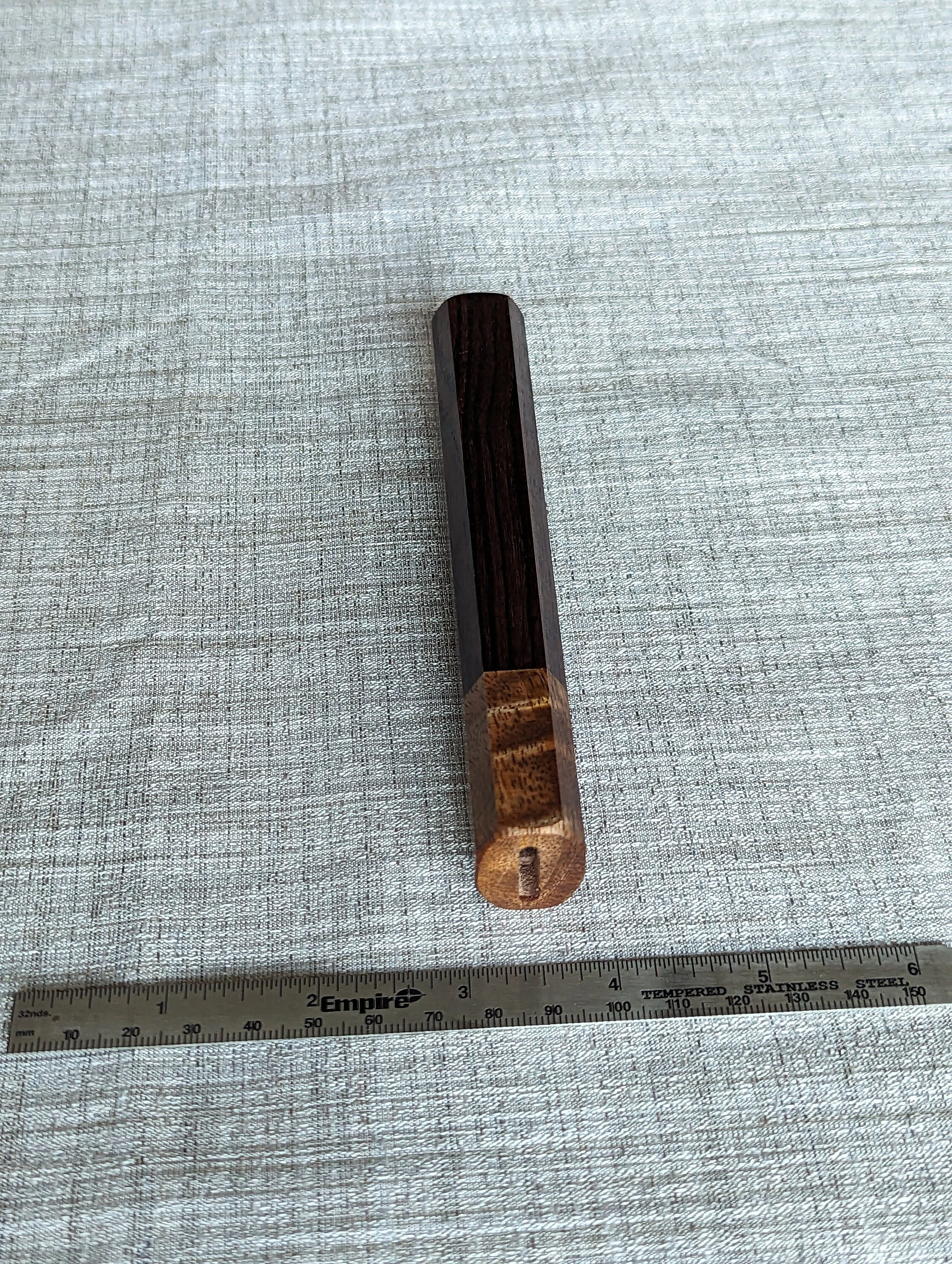 This is an Octagonal Wa (Japanese Style) Handle for use on Japanese style kitchen knives. The handle is made from Mexican Kingwood and Stabilized Mango.